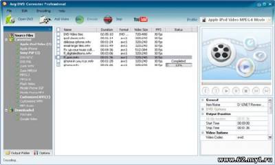 Any DVD Video Converter - является инструментом для преобразования видео с простым в использовании графическим интерфейсом, быстрой скоростью преобразования и отличным качество видео. Он позволяет вам легко конвертировать почти все видео форматы, включая DivX, XviD, MOV, RM, RMVB, MPEG, VOB, DVD, WMV, AVI с MPEG-I, MPEG-I, DVD NTSC, PAL DVD, Flash для видео (FLV), AVI Видео и заказной фильм форматы WMV. Any DVD Video Converter позволяет пакетное преобразование файлов. Преобразованные файлы будут сохранены в заранее выбранный каталог папки и оригинальные файлы останутся нетронутыми. Программа имеет мультиязычный интерфейс, включая русский язык. Особенности: • Простой и удобный интерфейс, проста в использовании; • Конвертация всех видео форматов MPEG-I, MPEG-I, DVD NTSC, PAL DVD, Flash для видео (FLV), видео AVI и WMV форматов. • Пакетное конвертирование любых видео форматов, включая AVI, WMV, ASF, MPG, MP4 и т.д. • Поддержка DivX и Xvid AVI формат, импортирующих и экспортирующих видео • Поддержка умолчаний, видео / аудио настройки, или пользовательских настроек параметров видео и аудио. • Имеется возможность просматривать видео в режиме реального времени до перехода. • Быстрая скорость преобразования видео с прекрасным видео и аудио качеством. • Поддерживает настройки многих видео / аудио вариантов MP4 файлов. Например, видео / аудио дискретизации, битрейт, размер видео