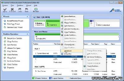 Aomei Partition Assistant – мощная программа для работы с жёстким диском, администрирования разделов для ПК и рабочих станций. Программа ответит на такие вопросы, как: “Как изменить размер раздела или обьединить разделы без потери данных? Как увеличить производительность компьютера?” Программа позволяет управлять разделами жесткого диска, как и Partition Magic, но более мощно, с улучшенной функциональностью и совместимостью. Особенности: • Возможность расширить системный раздел NTFS, не перезагружая компьютер для максимизации производительности компьютера и минимизации простоя; • Слияние смежных разделов в один большой без потери данных, или объединение незанятого пространства в раздел; • Разделение одного большого раздела на два или более разделов; • Создание стольких разделов, сколько вам нужно, без использования свободного места на диске; • Копирование разделов для миграции системы Windows или при резервном копировании важных данных; • Клонирование жесткого диска помогает при его обновлении; • Быстрое распределение свободного пространства из одного раздела в другой для полного использования дискового пространс []  [/] Размер: 3.19 Мб Информация на восстановление: +1% Язык Интерфейса: English Лекарство: в архиве Платформа: Windows 2000/2003/XP/Vista/ 7 Cкачать Aomei Partition Assistant Professional Edition 4.0 :