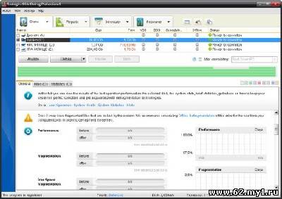 Auslogics Disk Defrag Pro - профессиональная версия компактного и быстрого дефрагментатора, работающего как с FAT 16/32, так и с NTFS файловыми системами. Программа использует ряд алгоритмов, которые позволяют оптимизировать и упорядочить файлы Вашего жесткого диска, дефрагментировать файловую структуру и ускорить работу приложений и Windows. Особенности: - Дефрагментация заблокированных системных файлов - 4 способа оптимизации размещения файлов - Особые алгоритмы для SSD дисков и VSS режима - Предотвращение фрагментации файлов - Мониторинг производительности диска []  [/] Размер: 4,04 Мб Информация на восстановление: +1% Язык Интерфейса: English Лекарство: в архиве Платформа: Windows 2000/2003/XP/Vista/ 7 Cкачать Auslogics Disk Defrag Pro 4.0.1.50 :