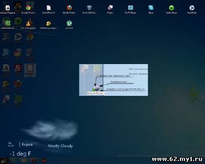 Разработчики приложения предусмотрели и возможность управления отдельными окнами приложений, правда далеко не самым удобным способом. Левый клик мышью по иконке Blacksmith в системном трее вызывает небольшой виджет, который необходимо поместить на нужном окне, а потом кликом по одной из трёх ягод (?!) сделать окно полупрозрачным, установить его поверх других окон или отправить на другой рабочий стол. Правый клик по исконке в трее вызывает меню для моментального перехода к нужному рабочему столу и активации других функций.