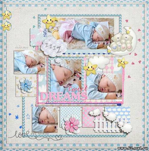 Детский нарисованный скрап-комплект - Сонные мишки 50 png | 15 jpg | 3600xp3600px | 115,76 Mb