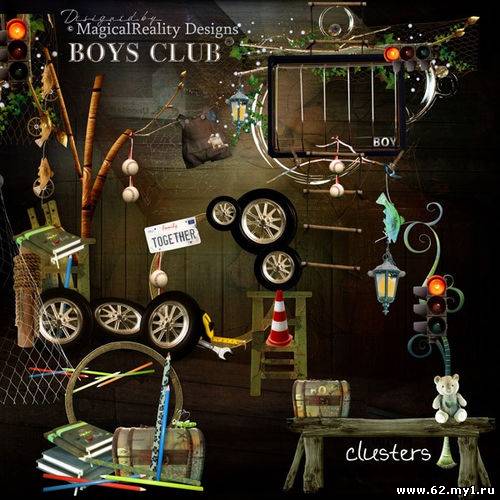 Детский скрап-комплект для мальчишек - Клуб для мальчиков 114 png | 15 jpg | 9 QP | 6 clusters | 3600xp3600px | 423,37 Mb