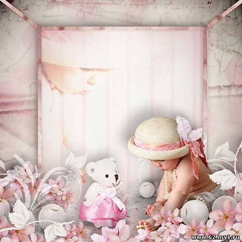 Детский скрап-набор - Маленький розовый мишка 74 png | 14 jpg | 6 clusters | 3600x3600px | 265,56 Mb
