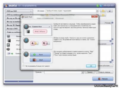 DVDFab - мощная программа для копирования DVD и Blu-Ray дисков на DVD5/DVD9 и Blu-Ray диски с возможностями гибкой обработки видеопотока. Программа является одной из лучших на сегодняшний день для копирования, разбиения, пережатия и конвертирования DVD дисков с фильмами. Снимает все защиты и ограничения с диска и, при желании, пережмет диск большой емкости и вместит его в обыкновенную пустую DVD болванку с минимальными потерями качества или разобьет фильм на два диска с полным переносом его меню, удалит всю рекламу, либо запишет только фильм и многое другое. Особенности: • Копирование DVD без потери качества • Копирование DVD (NTSC и PAL) на пишущий DVD привод • Сохранение структуры, меню, файлов и диалогов диска • Прожиг DVD-R/RW и DVD+R/RW • Копирование (извлечение) только видео дорожки • Удаление защит от копирования (CSS, Region, RCE, Macrovision, UOPs и др) • Высокая скорость работы • Высокое качество результата • Приятный и удобный интерфейс  " rel="nofollow" target="_blank">[img]  [/img] Размер: 20.27 Мб Информация на восстановление: +1% Язык Интерфейса: Multilanguage(Русский) Лекарство: в архиве Платформа: Windows 2000/2003/XP/Vista/ 7 Cкачать DVDFab v8.1.5.6 Final :