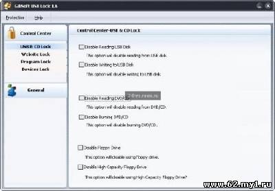 GiliSoft USB Lock - это простая и мощная утилита которая поможет вам заблокировать USB порт, сделать CD/DVD привод "только для чтения", блокировать некоторые веб-сайты, запретить запуск некоторых программ и отключить несколько устройств. Особенности: Отключить чтение / запись с USB. Отключить чтение / запись CD или DVD. Блокировка доступа к указанным веб-сайтам. Блокировка запуска указанных программ. Отключить принтер, модем, порты - COM/LPT, инфракрасный порт, Bluetooth. Защита паролем. Если пользователь вводит неправильный пароль более чем в 5 раз, программа пошлет сигнал тревоги (уведомление) по электронной почте. Очень простая в использовании программа с дружественным интерфейсом. []  [/] Размер: 3,31 Мб Информация на восстановление: +1% Язык Интерфейса: english Лекарство: в архиве Платформа: Windows 2000/2003/XP/Vista/ 7 Cкачать GiliSoft USB Lock 3.0 :
