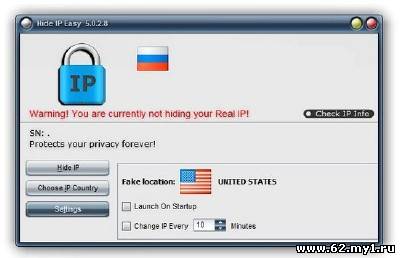 Hide IP Easy - программа для обеспечения интернет-безопасности, путем замены вашего реального IP адреса на другой. Проста и незатейлива - всего один клик и Ваш реальный IP-адрес будет скрыт, следующий клик и IP-адрес поменялся еще раз, ну а третьим кликом можно вернуть свой реальный адрес. Особенности: - Защищает от любого сайта, пытающегося «мониторить» за вашими предпочтениями или следить за вами по уникальному IP адресу - Помогает избежать использование вашей персональной информации для рассылки спама и прочего мусора - Оберегает от атак хакеров, скрывая IP адрес, так же как и информацию об операционной системе - Возможность частой смены IP адреса повышает безопасность - Включает и выключает скрытие IP по вашему желанию одним кликом - Позволяет обходить ограничение владельцев некоторых ресурсов на доступ пользователей из определенных стран или географических регионов - Используется с mail-сервисом для отправки анонимного письма. []  [/] Размер: 5,86 Мб Информация на восстановление: +1% Язык Интерфейса: english+Русский Лекарство: в архиве Платформа: Windows 2000/2003/XP/Vista/ 7 Cкачать Hide IP Easy V 5.1.6.8 + rus :