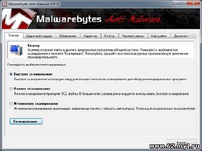 Malwarebytes Anti-Malware - новая версия программы от создателей RogueRemover Pro, AboutBuster и других популярных утилит, способной находить и удалять разнообразное вредоносное ПО. Программа использует эвристический метод сканирования, позволяющий в реальном времени контролировать безопасность всей системы. Также имеется возможность полного сканирования всех дисков. Помимо этого, в состав входят дополнительные утилиты, предназначенные для удаления вредоносных программ вручную. Также в программе имеется русский интерфейс и поддержка Windows 7. Особенности: - Поддержка Windows 2000, XP, Vista and 7 (32-bit and 64-bit). - Быстрое сканирование - Полное сканирование всех ваших дисков - Собственный модуль защиты системы - Ежедневное обновление базы - Настройки по оптимизации производительности программы - Небольшой список дополнительных утилит для удаления вредоносных программ вручную - Мультиязычность - Совместная работа с другими подобными программами (Anti-Malware, Anti-Spyware и т.д.) - Простой пользовательский интерфейс - Поддержка командной строки - Интеграция в контекстное меню, для проверки по требованию []  [/] Размер: 9.82 Мб Информация на восстановление: +1% Язык Интерфейса: Multilanguage(Русский) Лекарство: в архиве Платформа: Windows 2000/2003/XP/Vista/ 7 Cкачать Malwarebytes Anti-Malware 1.60.1.1000 Beta (ML/RUS) :