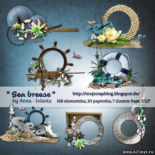 Морской набор для скрапбукинга - Морской бриз 168 png | 20 jpg | 7 clusters | 3600xp3600px | 221 Mb