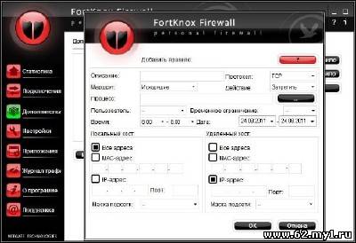 FortKnox Personal Firewall - персональный фаервол предназначен для защиты Вашего компьютера от хакерских атак, троянских программ, шпионского ПО и интернет угроз. Система предотвращения вторжений и технология SPI, расширяют возможности защиты конечного пользователя. Фаервол от FortKnox предлагает Вам полный контроль над входящими и исходящими соединениями в виде интуитивно понятного интерфейса. Программа позволяет создавать правила и вести контроль за приложениями, которые имеют какое-либо соединение с интернетом. Пользователи имеют право устанавливать собственные правила для приложений, которые считают нужными. Благодаря своему интуитивно-понятному интерфейсу, данная программа подходит как для начинающих, так и для опытных пользователей. Особенности: - Защищает систему от внешних и внутренних атак - Комплексная система предотвращения вторжения - Полный обзор всей сетевой активности - Дополнительные правила и возможности для опытных пользователей - Технологии анти-спуфинга - Настройка общего доступа к файлам и принтерам - Дружественный пользовательский интерфейс - Автоматическое обновление базы - Простая и легкая настройка - Поддержка разнообразных скинов - Многоязычный интерфейс включая Русский []  [/] Размер: 4,9 Мб Информация на восстановление: +1% Язык Интерфейса: Multilanguage(Русский) Лекарство: в архиве Платформа: Windows 2000/2003/XP/Vista/ 7 Cкачать NETGATE FortKnox Personal Firewall 7.0.805 :