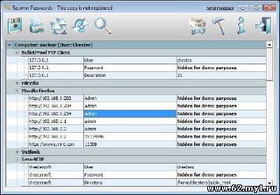 Recover Passwords - незаменимая программа для любого пользователя, с помощью которой Вы сможете восстановить любой пароль к более чем 100 программам, в том числе таким популярным, как Mozilla Firefox, Opera, MSN Messenger, Microsoft Outlook, и т.д. Программа быстро просканирует Ваш компьютер, а также компьютеры в Вашей сети и выдаст нужные и забытые пароли, которые можно сохранить в TXT, HTML, Word, Excel, PDF, CSV, XML форматах и распечатать на принтере. Особенности: » Восстановление паролей из 108 установленных программ, в том числе таких популярных программах, как Mozilla Firefox, MSN Messenger, Microsoft Outlook, и т.д. » Экспорт восстановленных данных в текстовый файл, HTML, Word, Excel, PDF, CSV, XML или вкладке разделенных файлов » Сканирование удаленного компьютера сети без установки на удаленном компьютере » Удобный и интуитивно-понятный многоязычный (12 языков) интерфейс.
