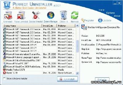 Perfect Uninstaller - программа для тщательного удаления программого обеспечения, которые нельзя удалить с помощью стандартного диалога удаления и установки программ Windows. С этой программой вы сможете удалять ненужные приложения в вашей системе быстрее и легче. Стандартный диалог установки и удаления программ часто не может удалить определенные приложения или сломанные ключи реестра, в отличие от данной утилиты, программа не только позволит вам удалить приложения, но и очистит ваш ПК от поврежденных записей в системном реестре, улучшая производительность и скорость вашей системы. Кроме того, с помощью этого приложения вы сможете узнать детальную информацию о том, какие файлы и записи реестра затронула установка той или иной программы. Интерфейс программы прост и легок в использовании. Особенности: • Быстрее, чем стандартная утилита по удаления ПО, встроенная в Windows. • Удаление программ, которые не могут быть удалены с помощью стандартного диалога удаления и установки. • Полностью очищает пустые и испорченные ключи в системном реестре. • Защищает ваш системный реестр от пустых и испорченных ключей, повышая тем самым производительность системы. • Принудительное удаление скрытого приложения, установленного на ваш компьютер. • Быстрый переход в папку с установленной программой. • Отображение деталей определенной программы для принятия решения об удалении или оставлении программы на компьютере. • Простое использование и дружелюбный интерфейс. • Показ детальной информации текущих установленных приложений.