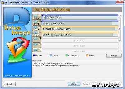 R-Drive Image - утилитa для создания файлов образа диска и резервного копирования данных. Файл образа диска, содержащий точную, "байт в байт" копию жесткого диска, раздела или лигического диска, может быть создан без перезагрузки компьютера и с различным уровнем сжатия данных. Созданный образ диска может быть сохранен на носителях различного вида, включая такие съемные носители, как CD-R(W)/DVD, Iomega Zip и Jazz диски. R-Drive Image восстанавливает образ диска на оригинальный диск, на другой раздел или на свободное неформатированное пространство диска без перезагрузки системы. Для восстановления системного или заблокированного раздела R-Drive Image переключается в псевдографический режим напрямую из Windows или запускается загрузочная версия программы с CD или комплекта дискет.