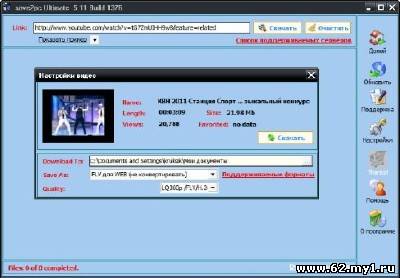 save2pc - программа для загрузки и конвертирования видео файлов, размещённых на популярном видео-хостинге YouTube. При помощи YouTube Downloader можно просто загрузить хоть какой видео файл веб-сервиса YouTube по приведенной на его страничке ссылке. Все, что требуется от юзера - это скопировать и вставить ссылку в особое окно программки, выбрать хотимый формат и запустить автоматическую загрузку и конвертирование видео файла. Поддерживаются самые распространённые видео форматы (AVI, WMV, MOV, 3GP, MP4). Не считая того, может быть сохранение не видеоролика, а лишь его звуковой дорожки в формате MP3. Для конвертирования скаченных файлов употребляется всепригодный программный движок FFmpeg. В случае необходимости возможна ручная настройка всех характеристик кодировки, применяя обычные команды кодеков в строке пуска. Особенности: 1. Скачать видео с Youtube, GodTube, Google Video, MySpace Video, Megavideo.com, Break.com, DailyMotion.com, TeacherTube.com 2. Скачать видео с серверов взрослого видео: RedTube, PornoTube, YouPorn, Megarotic, yuvutu. 3. Автоматическое URL-разбор и многопоточная загрузка. Скачать несколько файлов одновременно. 4. Преобразование загруженных видео на IPod, PSP, КПК, iPhone, мобильный телефон формата. 5. Сохраните загруженное видео в различных форматах:... AVI, MPEG, FLV или даже WMV. 6. Преобразование загруженных видео и аудио форматы для мобильных устройств : MOV, MP4, 3GP, 3G2, MP3, WAV. 7. Предварительный просмотр выбранного видео перед загрузкой. Получить размер, длина, рейтинг, мнения файл перед скачиванием его! 8. Youtube содержание проверки возраста обхода. Вам даже не нужно, создать учетную запись для загрузки таких видео. 9. save2pc это небольшой, быстрый, полезный, практичный и мощный. 10. Получить все обновления и обновления для 3.xx бесплатно. Вы не должны платить ничего чтобы модернизировать save2pc. 11. Бесплатная пожизненная техническая поддержка. Зарегистрированный пользователь может предложить новые видео-сайты или любые другие функции.