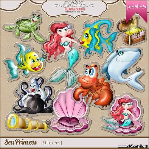 Сказочный морской скрап-комплект - Морская принцесса 102 png | 34 jpg | 7 clusters | 4 Scattered | 3600xp3600px | 527,8 Mb
