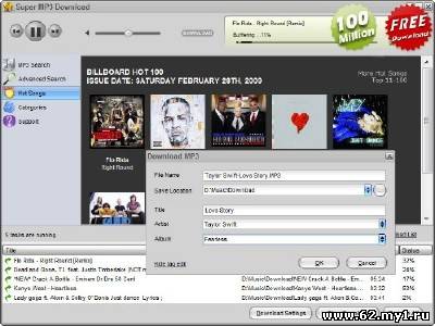 Super MP3 Download Pro - программа, предоставляющая быстрый доступ к бесплатной музыке. Этот mp3-загрузчик надолго обеспечит Вас музыкальными композициями. В мире существуют тысячи групп и исполнителей, размещающих свое творчество бесплатно. Вероятность найти среди них что-нибудь по душе очень велика. Чтобы облегчить Ваш поиск, приложение предложит топ сто недели и лучшее в четырнадцати жанрах. Вы сможете вначале прослушать мелодию и лишь потом сохранить её на жесткий диск.