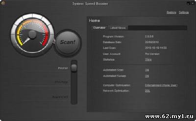 System Speed Booster - представляет собой набор мощных безопасных утилит, служащих для тонкой настройки работы операционных систем семейства Windows. Программа может оптимизировать работу как целой ОС, так и определенного приложения, посредством изменения огромного количества настроек и параметров (в том числе и скрытых, то есть недоступных обычным способом), а также найдет ошибки, которые можно устранить нажатием одной кнопки, имеет аккуратный и легкий в использовании интерфейс. При помощи данной программы Вы можете выучить техническую информацию своего персонального компьютера и управлять параметрами настройки, а также пользоваться другими легкими и удобными функциями. Программа способна оптимизировать Ваш компьютер и держать его при пиковой производительности, а также защитить Вашу личную информацию. Особенности: - Качественная читка реестра! Способна исследовать и чистить захламляющие данные реестра. - Способность обеспечить конфиденциальность данных - Включает и выключает рапзгон в любой игре можно по вашему желанию одним щелчком. - Хорошо перенастраиваемый и прекрасно отработанный интерфейс - Имеется функция защиты данных от атак хакеров []  [/] Размер: 3.69 Мб Информация на восстановление: +1% Язык Интерфейса: English Лекарство: в архиве Платформа: Windows 2000/2003/XP/Vista/ 7 Cкачать System Speed Booster v2.9.0.8 :
