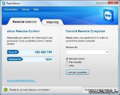 TeamViewer - программа позволяет получить доступ к компьютеру из любой точки интернета (IP-адрес удаленной машины можно не знать, но на втором компьютере тоже должна быть установлена эта же программа). Кроме доступа к рабочему столу и управления удаленным компьютером с помощью TeamViewer можно передавать файлы, устраивать презентации, помогать настроить компьютер, общаться в чате и т.д. Особенности: - Одно решение для любых ситуаций В то время как большинство конкурентов предлагают различные программные пакеты для удалённой поддержки, удалённого администрирования, обучения и продаж (требуя также платы за них...), TeamViewer является универсальным решением для любых ситуаций: TeamViewer собрал все модули в одном простом и действительно доступном пакете. - Администрирование серверов с удалённым обслуживанием TeamViewer также можно использовать для управления компьютерами и серверами с удалённым обслуживанием. Установки в качестве системной службы позволяют выполнять перезагрузку и переподключение. - Передача файлов В TeamViewer встроена функция передачи файлов, позволяющая вам копировать файлы и папки от вашего партнёра и к нему – и эта функция также работает через брандмауэр - Высочайший стандарт безопасности TeamViewer – очень защищённое решение. Все версии используют полностью защищённые каналы передачи данных с обменом ключами и шифрованием сеанса AES (256 бит), такой же стандарт безопасности используют протоколы https/SSL. Отображение статуса онлайн Вы – члены команды и находитесь в разных местах? Необходимо продемонстрировать свой рабочий стол или вместе поработать над документом? В списке партнёров TeamViewer вы сможете увидеть, кто в данный момент доступен, и подключиться к нему одним щелчком мыши. - Удалённая поддержка без установки С TeamViewer вы можете удалённо управлять любым ПК через Интернет из любой точки. Установка не требуется, просто запустите приложение с обеих сторон и подключитесь – даже через брандмауэры. - Удалённые демонстрации продукции, разработок и услуг TeamViewer позволяет Вам демонстрировать партнёру свой рабочий стол. Откройте через Интернет доступ к демонстрационным материалам, продукции и презентациям за несколько секунд. - Работа через брандмауэры Главная трудность при использовании программного обеспечения для удалённого доступа – это брандмауэры и заблокированные порты, а также NAT-маршрутизация локальных IP-адресов. Если вы используете TeamViewer, то не нужно беспокоиться о брандмауэрах: TeamViewer найдёт путь к вашему партнёру. - Доступ через браузер Вы в пути, и вам необходимо поработать с удалённым компьютером? Почему бы не воспользоваться TeamViewer Web Connector? Созданное только с использованием html и flash-технологии, это решение можно запускать практически из любого браузера в любой операционной системе. Оптимизированная производительность Неважно, подключены вы через локальную сеть или модем, – TeamViewer оптимизирует качество отображения и скорость передачи данных в зависимости от типа подключения к сети.