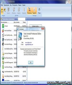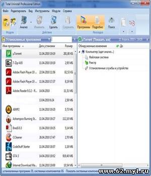 Возможности программы: * В 3 раза быстрее чем стандартная Установка и Удаление программ * 3 категории программ: Программы, Системные, Скрытые * 3 способа сортировки приложений: по имени, по занимаемому дисковому пространству, по дате инсталляции * Удаление программ, которые нельзя удалить используя штатные средства * Удаление программных записей из реестра * Функция быстрого поиска программы в списке по частям её имени * Навигация к записи реестра, папке, куда установлена выбранная программа, а также возможность открыть её веб сайт * Просмотр детальной информации о любой программе, установленной на вашем компьютере * Простой, многоязычный и комфортный пользовательский интерфейс * Возможность заменять стандартный апплет Установки и Удаления программ * Портативность - вы можете запускать Uninstall Tool прямо с вашего usb флеш диска * Сохранение (экспортировании в HTML) детальных отчетов об установленных программах * Запуск Компонентов Windows и Установки и Удаления программ