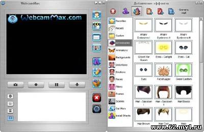 WebCamMax - продвинутая утилита для работы с веб-камерой. Программа, добавляющая изумительные видеоэффекты на все вебкамеры, даже без реальной камеры. Программу можно использовать по умолчанию в таких приложениях, как ICQ, AIM, MSN, Camfrog, Skype, Paltalk, Yahoo, ANYwebcam, Stickam. Можно настроить WebcamMax Full так, чтобы она начинала функционировать и вести трансляцию с камеры только в том случае, когда объектив зафиксирует движение. Доступны более 1000 спецэфектов (на сайте производителя) включая телевизионную заставку, воду, туман, смайлы и т.п., прокрутка текста поверх видео, мягкое переключение между несколькими прямыми передачами и сохраненными образами, использование одной камеры сразу несколькими одновременно запущенными программами, обработка собственного изображения для придачи привлекательности или иных визуальных эффектов. Особенности: Сотни визуальных эффектов для передаваемого видео. Возможность скачивания дополнительных эффектов с сайта программы. Поддержка записи видео с визуальными эффектами. Корректная работа с Windows Live Messenger, Skype, Yahoo Messenger, ICQ, Paltalk, Camfrog, YouTube, Ustream, JustinTV. Поддержка шаблонов для быстрого доступа к любимым эффектам.